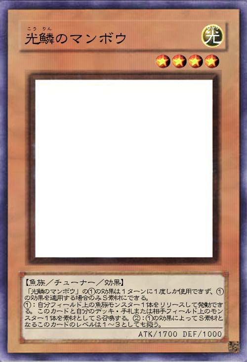 | 「光鱗のマンボウ」の①の効果は1ターンに1度しか使用できず、①の効果を適用する場合のみS素材にできる。 ①:自分フィールド上の魚族モンスター1体をリリースして発動できる。このカードと自分のデッキ・手札または相手フィールド上のモンスター1体を素材としてS召喚する。②:①の効果によってS素材となるこのカードのレベルは1~3としても扱う。 | |||