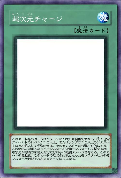 「遊戯王EXS特別編で、D・エンペラーが使ったカード。レベル・ランク10以上のモンスターの攻撃力を倍にし、貫通ダメージを与えることができるようにするカード。高レベル、高ランクのカードにはただでさえ攻撃力が高いモンスターがいるというのに、それを更に倍にして貫通も与えられるようにするという恐ろしいカード。更に、元々の攻撃力を倍加させるのではないので、強化を重ねるとさらに恐ろしいことになる。効果を受けたモンスター以外戦闘ダメージを与えられなくなるデメリットがあるが、露払いに使ってやればよいのでそんなにデメリットではななかったり。」(2019-03-23 09:17)
