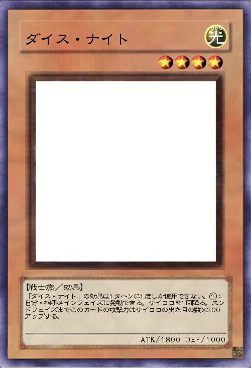 | 「ダイス・ナイト」の効果は1ターンに1度しか使用できない。①:自分・相手メインフェイズに発動できる。サイコロを1回降る。エンドフェイズまでこのカードの攻撃力はサイコロの出た目の数×300アップする。 | |||