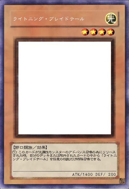| ①:このカードが光属性モンスターのアドバンス召喚の為にリリースされた時、自分のデッキまたは除外されたカードの中から「ライトニング・ブレイドテール」を任意の枚数だけ特殊召喚できる。 | |||