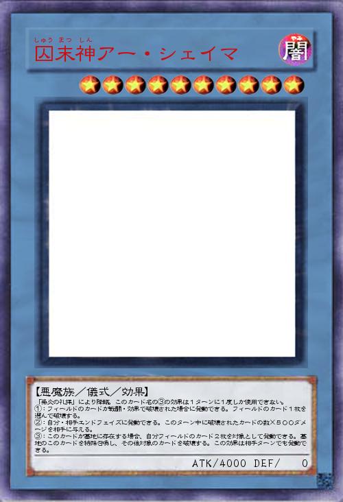 「破壊を以て大地を焦がし、暴虐を以て天を染めよ!儀式召喚!宴の時だ、《囚末神アー・シェイマ》!!」(2019-03-26 09:21)