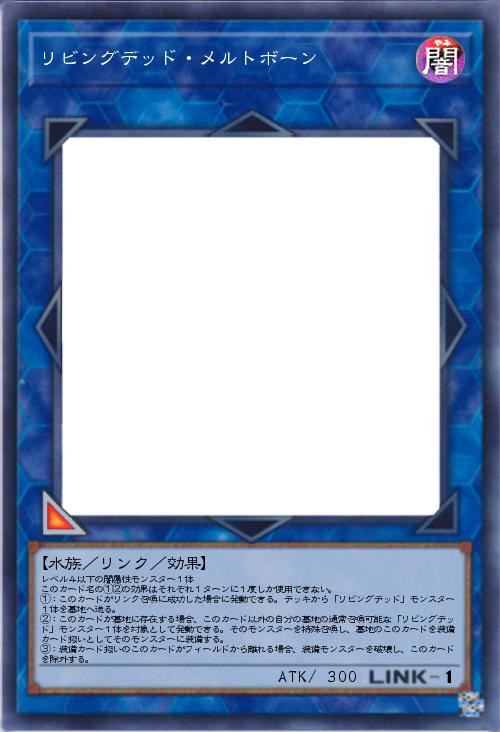 | レベル4以下の闇属性モンスター1体 このカード名の①②の効果はそれぞれ1ターンに1度しか使用できない。 ①:このカードがリンク召喚に成功した場合に発動できる。デッキから「リビングデッド」モンスター1体を墓地へ送る。 ②:このカードが墓地に存在する場合、このカード以外の自分の墓地の通常召喚可能な「リビングデッド」モンスター1体を対象として発動できる。そのモンスターを特殊召喚し、墓地のこのカードを装備カード扱いとしてそのモンスターに装備する。 ③:装備カード扱いのこのカードがフィールドから離れる場合、装備モンスターを破壊し、このカードを除外する。 | |||