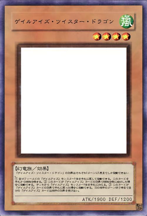 | 「ゲイルアイズ・ツイスター・ドラゴン」の効果はそれぞれ1ターンに1度までしか発動できない。 ① 自分フィールドの「ゲイルアイズ」モンスター1体を手札に戻して発動できる。このカードを手札から特殊召喚する。② このカードが「ゲイルアイズ」カードの効果で特殊召喚に成功した場合に発動できる。デッキから「ゲイルアイズ」モンスター1体を手札に加える。③ このカードが「ゲイルアイズ」カードの効果で手札に戻った場合に発動できる。次の相手のターン終了時まで自分の「ゲイルアイズ」カードは相手の効果を受けない。 | |||