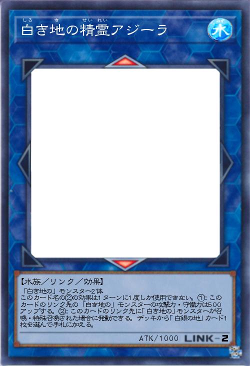 | 「白き地の」モンスター2体 このカード名の②の効果は1ターンに1度しか使用できない。①:このカードのリンク先の「白き地の」モンスターの攻撃力・守備力は500アップする。②:このカードのリンク先に「白き地の」モンスターが召喚・特殊召喚された場合に発動できる。デッキから「白銀の地」カード1枚を選んで手札に加える。 | |||