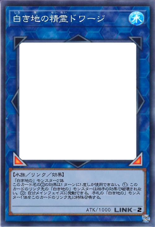 | 「白き地の」モンスター2体 このカード名の②の効果は1ターンに1度しか使用できない。①:このカードのリンク先の「白き地の」モンスターは相手の効果で破壊されない。②:自分メインフェイズに発動できる。手札の「白き地の」モンスター1体をこのカードのリンク先に特殊召喚する。 | |||