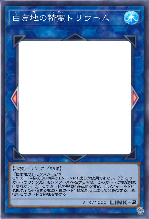 | 「白き地の」モンスター2体 このカード名の②の効果は1ターンに1度しか使用できない。①:このカードのリンク先にモンスターが存在する場合、このカードは攻撃対象にされない。②:このカードが墓地に存在する場合、自分フィールドに表側表示で存在する魔法・罠カード1枚を墓地に送って発動できる。墓地のこのカードを特殊召喚する。 | |||