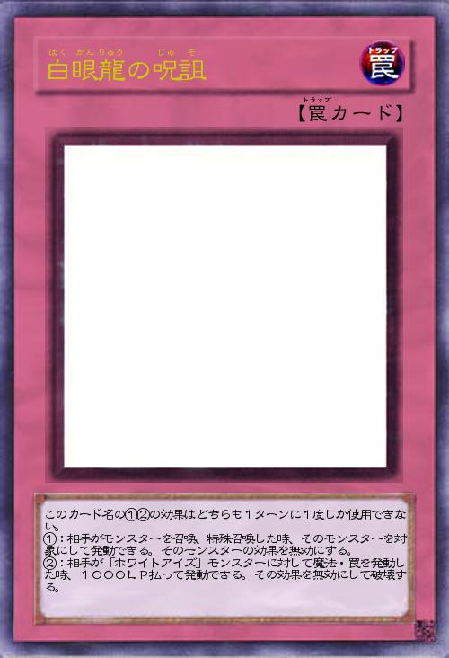 | このカード名の①②の効果はどちらも1ターンに1度しか使用できない。 ①:相手がモンスターを召喚、特殊召喚した時、そのモンスターを対象にして発動できる。そのモンスターの効果を無効にする。 ②:相手が「ホワイトアイズ」モンスターに対して魔法・罠を発動した時、1000LP払って発動できる。その効果を無効にして破壊する。 | |||
