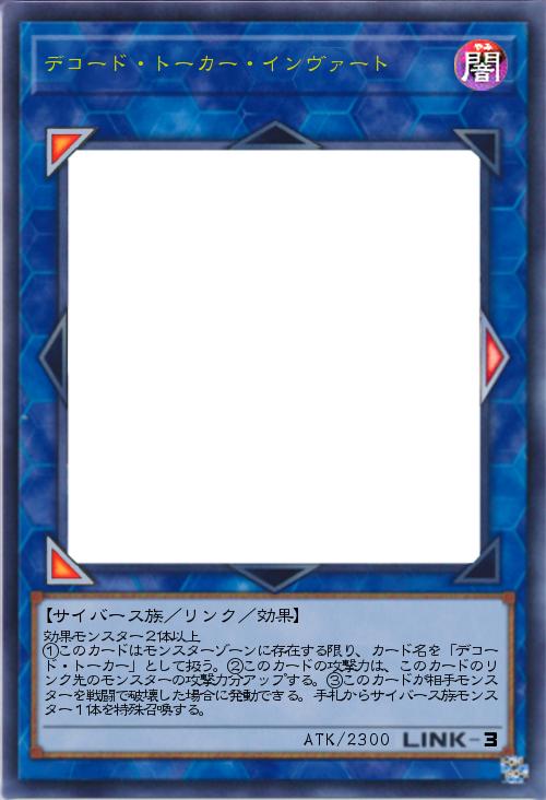 「デコード・トーカーのインヴァートバージョン。こちらはオルターガイスト・ヘクスティアみたいな感じの自己強化。エクステンド同様デコード・トーカー扱いになるのでデコード・エンドにも対応する形にしてあります。マーカーの向きが反転してるので真ん中のメインモンスターゾーンにでも置かない限りは1体分の強化に。」(2019-04-07 11:12)