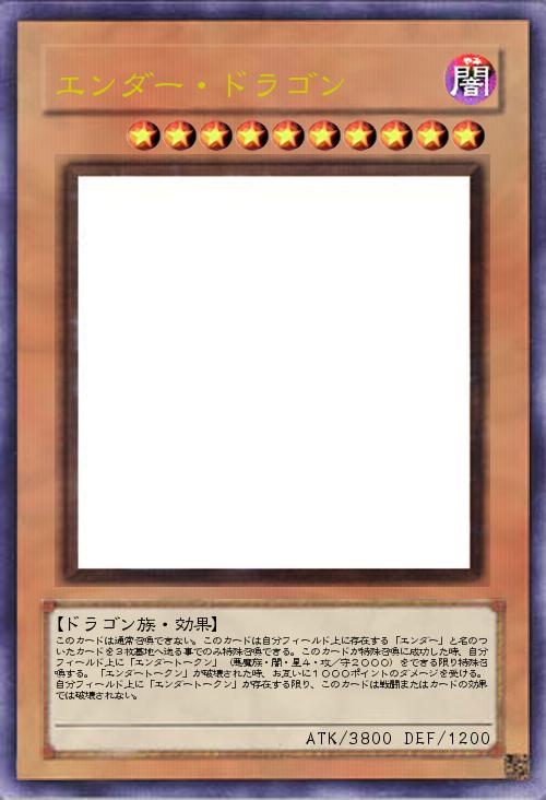 | このカードは通常召喚できない。このカードは自分フィールド上に存在する「エンダー」と名のついたカードを3枚墓地へ送る事でのみ特殊召喚できる。このカードが特殊召喚に成功した時、自分フィールド上に「エンダートークン」(悪魔族・闇・星4・攻/守2000)をできる限り特殊召喚する。「エンダートークン」が破壊された時、お互いに1000ポイントのダメージを受ける。自分フィールド上に「エンダートークン」が存在する限り、このカードは戦闘またはカードの効果では破壊されない。 | |||