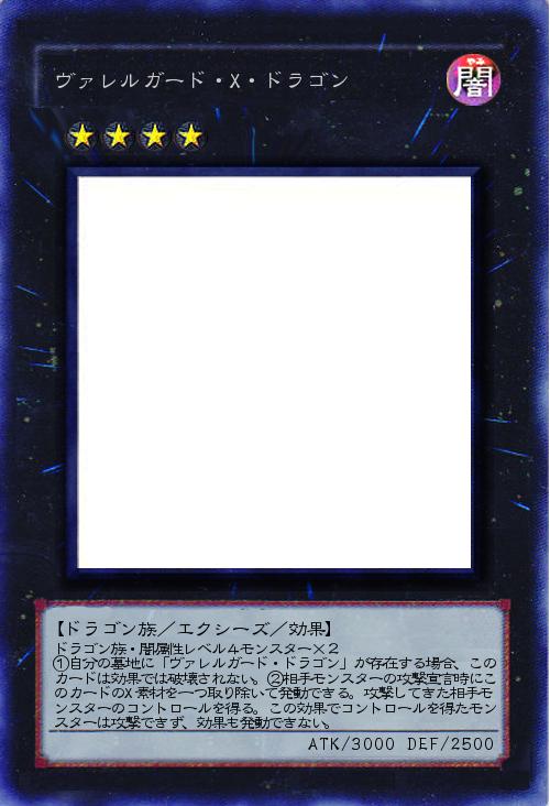 「いよいよヴァレルロード・X・ドラゴンの収録パックがあさって出るのでヴァレルガードのバージョンを作りました。ヴァレルガード・ドラゴンが墓地にいるときのみ効果破壊耐性を持ち、攻撃してきた相手モンスターをコントロール奪取する効果を持ってます。コントロール奪取しても攻撃もできず効果も発動できないので素材として利用する感じに。」(2019-04-11 21:30)