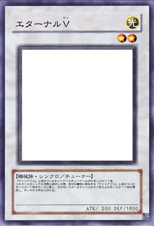 「ヴァリアブル」と名のついたチューナー+チューナー以外のモンスター1体 このカードのシンクロ召喚に成功した時、自分の墓地に存在する「ヴァリアブル」と名のついた モンスター1体をデッキに戻し、そのモンスターよりレベルが2つまで上のモンスター1体を選 択し、デッキから手札に加える。 |
