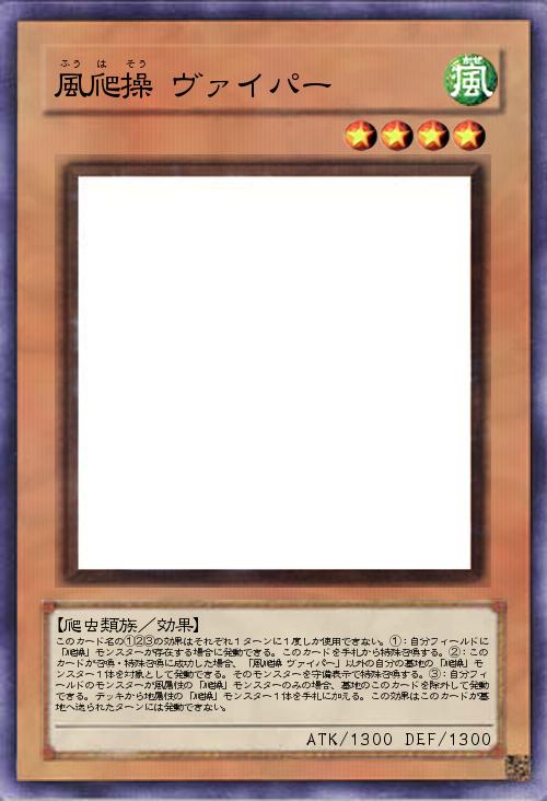 | このカード名の①②③の効果はそれぞれ1ターンに1度しか使用できない。①:自分フィールドに「爬操」モンスターが存在する場合に発動できる。このカードを手札から特殊召喚する。②:このカードが召喚・特殊召喚に成功した場合、「風爬操 ヴァイパー」以外の自分の墓地の「爬操」モンスター1体を対象として発動できる。そのモンスターを守備表示で特殊召喚する。③:自分フィールドのモンスターが風属性の「爬操」モンスターのみの場合、墓地のこのカードを除外して発動できる。デッキから地属性の「爬操」モンスター1体を手札に加える。この効果はこのカードが墓地へ送られたターンには発動できない。 | |||