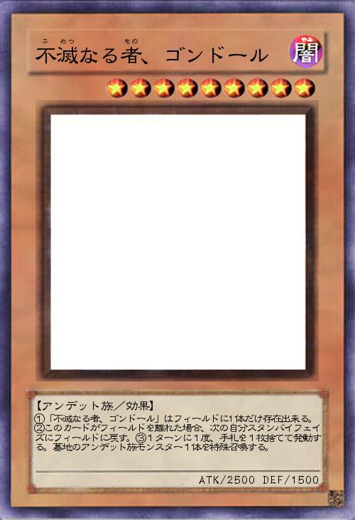 個人的にこういうカード名すきなんだけれど、遊戯王でやらないのは、さすがにデーモンの召喚とかゼラとか出してるのにここまでパクったら怒られそうだからなのだろうか…まあいいや。