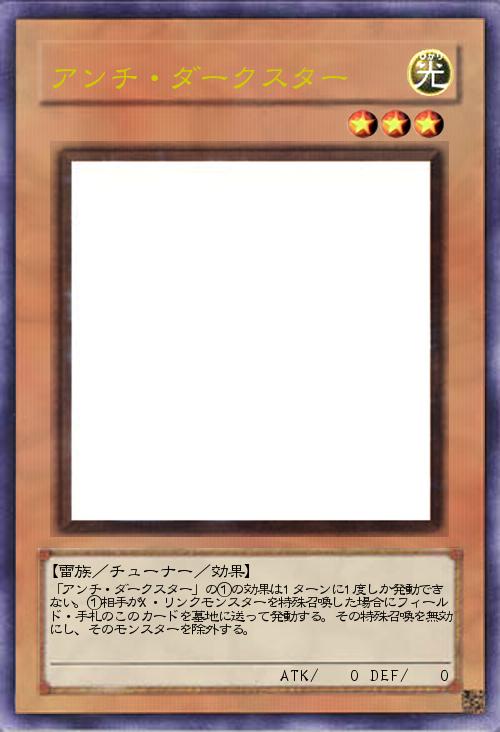 | 「アンチ・ダークスター」の①の効果は1ターンに1度しか発動できない。①相手がX・リンクモンスターを特殊召喚した場合にフィールド・手札のこのカードを墓地に送って発動する。その特殊召喚を無効にし、そのモンスターを除外する。 | |||