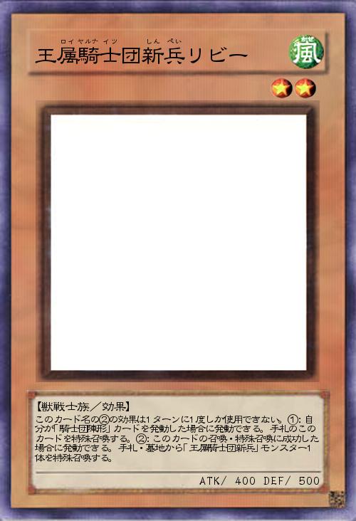 | このカード名の②の効果は1ターンに1度しか使用できない。①:自分が「騎士団陣形」カードを発動した場合に発動できる。手札のこのカードを特殊召喚する。②:このカードの召喚・特殊召喚に成功した場合に発動できる。手札・墓地から「王属騎士団新兵」モンスター1体を特殊召喚する。 | |||