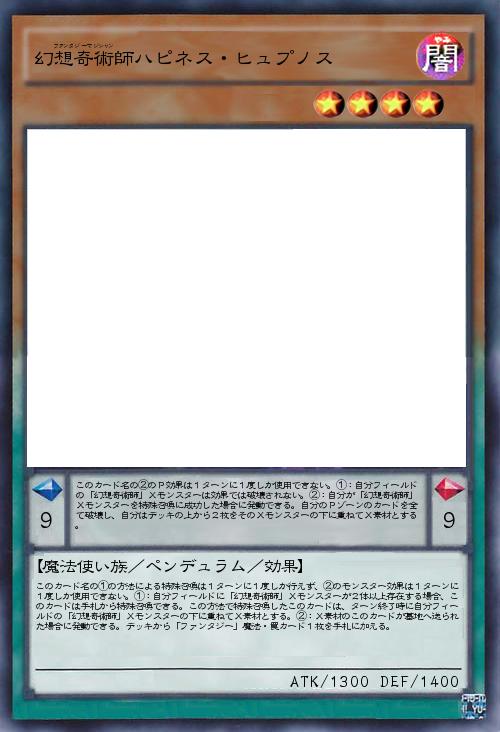 | このカード名の①の方法による特殊召喚は1ターンに1度しか行えず、②のモンスター効果は1ターンに1度しか使用できない。①:自分フィールドに「幻想奇術師」Xモンスターが2体以上存在する場合、このカードは手札から特殊召喚できる。この方法で特殊召喚したこのカードは、ターン終了時に自分フィールドの「幻想奇術師」Xモンスターの下に重ねてX素材とする。②:X素材のこのカードが墓地へ送られた場合に発動できる。デッキから「ファンタジー」魔法・罠カード1枚を手札に加える。 | |||