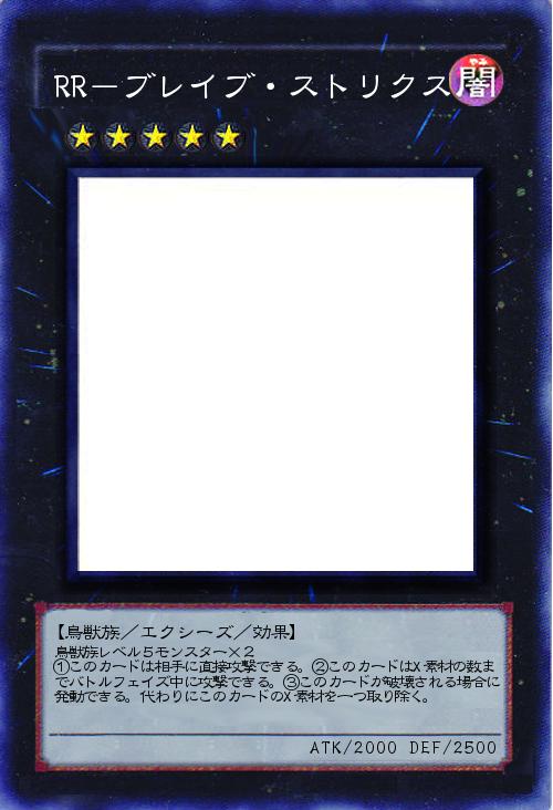 | 鳥獣族レベル5モンスター×2 ①このカードは相手に直接攻撃できる。②このカードはX素材の数までバトルフェイズ中に攻撃できる。③このカードが破壊される場合に発動できる。代わりにこのカードのX素材を一つ取り除く。 | |||