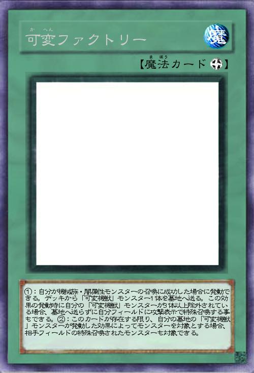 | ①:自分が機械族・闇属性モンスターの召喚に成功した場合に発動できる。デッキから「可変機獣」モンスター1体を墓地へ送る。この効果の発動時に自分の「可変機獣」モンスターが3体以上除外されている場合、墓地へ送らずに自分フィールドに攻撃表示で特殊召喚する事もできる。②:このカードが存在する限り、自分の墓地の「可変機獣」モンスターが発動した効果によってモンスターを対象とする場合、相手フィールドの特殊召喚されたモンスターも対象できる。 | |||
