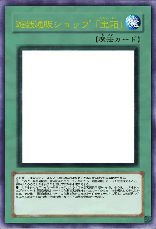 「看板娘「こちらは遊戯通販最大級ショップ、宝箱でございます。あなたの求めているカードが”絶対に”ある!それがこの宝箱なのです。ただし在庫が膨大で作業費がかかりますのでご注意くださいませ。そしてこのショップを選択されたプレイヤーはメンバーズカードが必要ですのでご注意くださいませ」