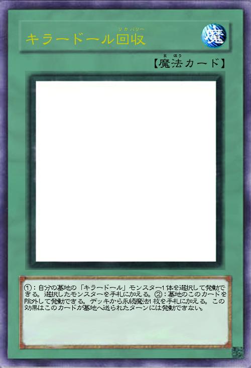 | ①:自分の墓地の「キラードール」モンスター1体を選択して発動できる。選択したモンスターを手札に加える。②:墓地のこのカードを除外して発動できる。デッキから永続魔法1枚を手札に加える。この効果はこのカードが墓地へ送られたターンには発動できない。 | |||