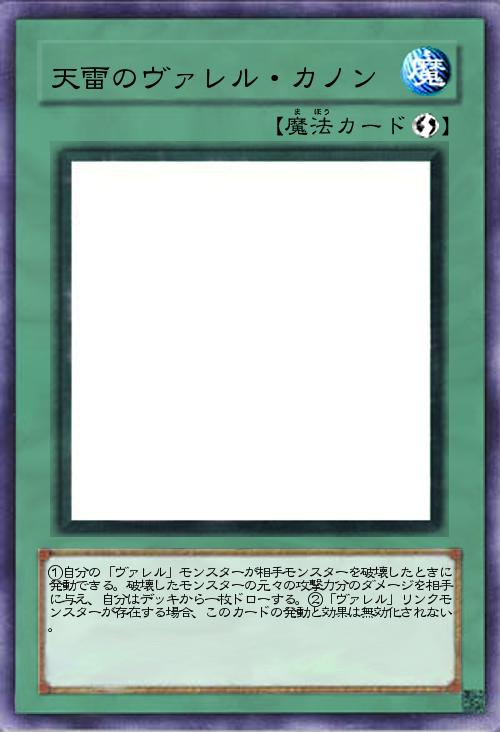 「ヴァレルロード・ドラゴンの攻撃名をカードにしました。ヴァレルモンスターが相手モンスターを破壊したときにバーンと一枚ドローできるカードです。ヴァレルリンクモンスターがいれば発動を無効化されずに使用できます。」(2019-04-24 22:44)