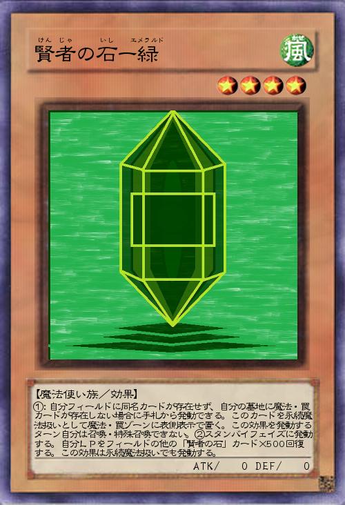 「緑は癒し。他の賢者の石の枚数分ライフを回復します。賢者の石カテゴリのメインデッキのモンスターは基本的に攻守0星4魔法使いで構成されています。能力のイメージとしては賢者の石同士が集まって魔力共鳴を起こし、さまざまな能力を持ち主に与える、といった感じです。」(2019-04-25 21:38)
