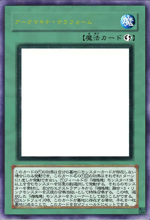 | このカードの①の効果は自分の墓地にモンスターカードが存在しない場合にのみ発動でき、このカード名の①②の効果はそれぞれ1ターンに1度しか発動できない。①フィールドの「魂魄機」モンスター1体以上を含むモンスターを任意の数選択して発動する。それらのモンスターを素材に、自分のエクストラデッキから「魂魄機」融合・S・リンクモンスターを正規の召喚法扱いとして特殊召喚する。この時、選択した「魂魄機」モンスターをチューナーとして扱うことができる。②エンドフェイズ時、このカードが墓地に存在する場合、手札を一枚墓地に送ることで、このカードを自分フィールドにセットできる。 | |||