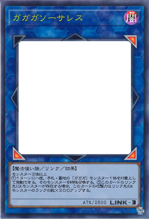 | モンスター2体以上 ①1ターンに一度、手札・墓地の「ガガガ」モンスター1体を対象として発動できる。そのモンスターを特殊召喚する。②このカードのリンク先にXモンスターが存在する場合、このカードの攻撃力はリンク先のXモンスターのランクの数×200アップする。 | |||
