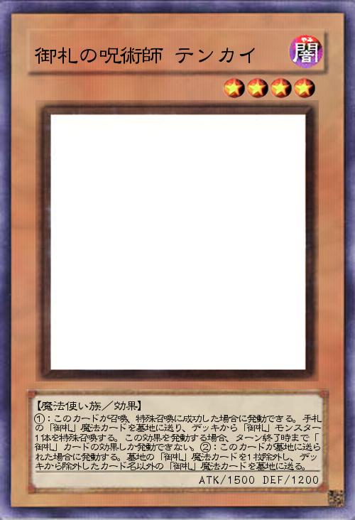 | ①:このカードが召喚、特殊召喚に成功した場合に発動できる。手札の「御札」魔法カードを墓地に送り、デッキから「御札」モンスター1体を特殊召喚する。この効果を発動する場合、ターン終了時まで「御札」カードの効果しか発動できない。②:このカードが墓地に送られた場合に発動する。墓地の「御札」魔法カードを1枚除外し、デッキから除外したカード名以外の「御札」魔法カードを墓地に送る。 | |||