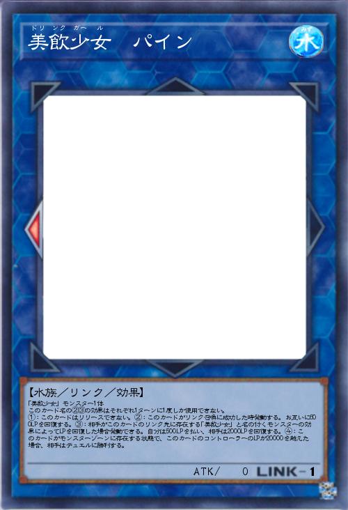 | 「美飲少女」モンスター1体 このカード名の②③の効果はそれぞれ1ターンに1度しか使用できない。 ①:このカードはリリースできない。②:このカードがリンク召喚に成功した時発動する。お互いに600LPを回復する。③:相手がこのカードのリンク先に存在する「美飲少女」と名の付くモンスターの効果によってLPを回復した場合発動できる。自分は500LPを払い、相手は2000LPを回復する。④:このカードがモンスターゾーンに存在する状態で、このカードのコントローラーのLPが20000を越えた場合、相手はデュエルに勝利する。 | |||