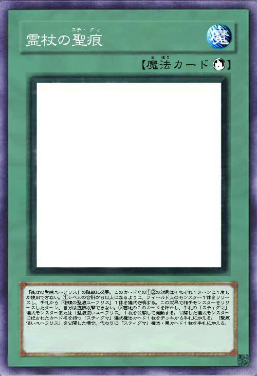 | 「術理の聖痕ユーフリス」の降臨に必要。このカード名の①②の効果はそれぞれ1ターンに1度しか使用できない。①レベルの合計が8以上になるように、フィールド上のモンスター1体をリリースし、手札から「術理の聖痕ユーフリス」1体を儀式召喚する。この効果で相手モンスターをリリースしたターン、自分は直接攻撃できない。②墓地のこのカードを除外し、手札の「スティグマ」儀式モンスターまたは「聖痕使いユーフリス」1枚を公開して発動する。公開した儀式モンスターに記されたカード名を持つ「スティグマ」儀式魔法カード1枚をデッキから手札に加える。「聖痕使いユーフリス」を公開した場合、代わりに「スティグマ」魔法・罠カード1枚を手札に加える。 | |||