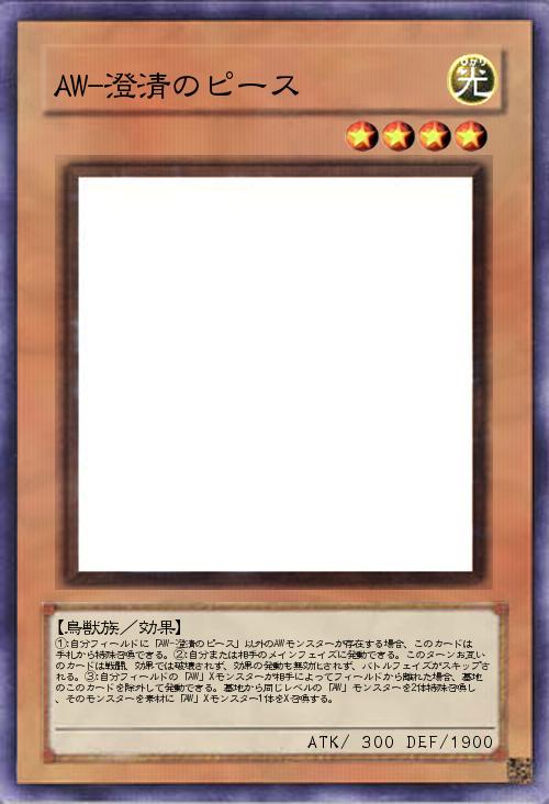 | ①:自分フィールドに「AW-澄清のピース」以外のAWモンスターが存在する場合、このカードは手札から特殊召喚できる。②:自分または相手のメインフェイズに発動できる。このターンお互いのカードは戦闘、効果では破壊されず、効果の発動も無効化されず、バトルフェイズがスキップされる。③:自分フィールドの「AW」Xモンスターが相手によってフィールドから離れた場合、墓地のこのカードを除外して発動できる。墓地から同じレベルの「AW」モンスターを2体特殊召喚し、そのモンスターを素材に「AW」Xモンスター1体をX召喚する。 | |||