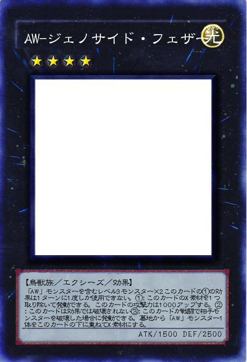 「掲示板のカード名がジェノサイド・ウィングになっていますが、正しくはジェノサイド・フェザーです。あと、召喚条件が間違っています。申し訳ありません」(2019-05-07 09:42)