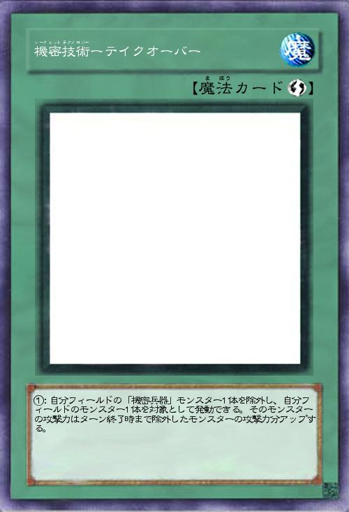 | ①:自分フィールドの「機密兵器」モンスター1体を除外し、自分フィールドのモンスター1体を対象として発動できる。そのモンスターの攻撃力はターン終了時まで除外したモンスターの攻撃力分アップする。 | |||