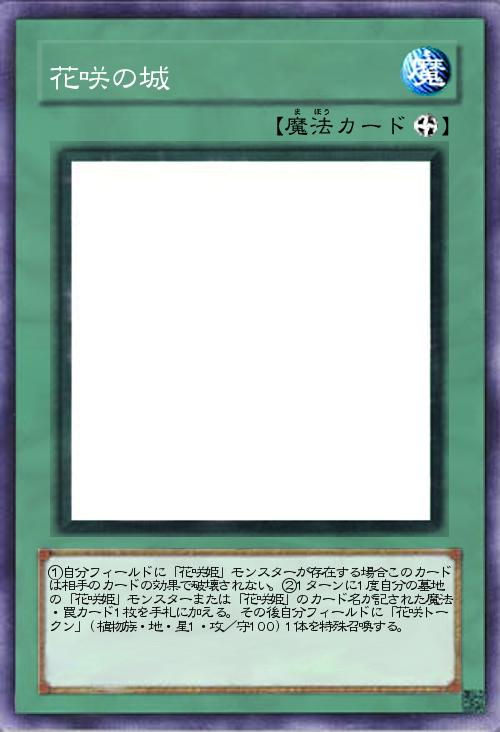 | ①自分フィールドに「花咲姫」モンスターが存在する場合このカードは相手のカードの効果で破壊されない。②1ターンに1度自分の墓地の「花咲姫」モンスターまたは「花咲姫」のカード名が記された魔法・罠カード1枚を手札に加える。その後自分フィールドに「花咲トークン」(植物族・地・星1・攻/守100)1体を特殊召喚する。 | |||
