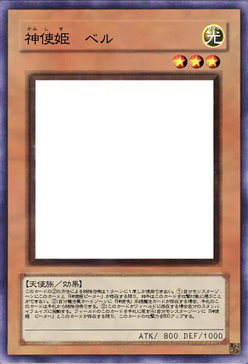 | このカードの②の方法による特殊召喚は1ターンに1度しか使用できない。①:自分モンスターゾーンにこのカードと「神使姫ピーター」が存在する限り、相手はこのカードを攻撃対象に選ぶことができない。②:自分魔法罠カードゾーンに「神使唄」永続魔法カードが存在する場合、手札のこのカードは手札から特殊召喚できる。③:このカードがフィールドに存在する場合自分のスタンバイフェイズに発動する。フィールドのこのカードを手札に戻す④:自分モンスターゾーンに「神使姫 ピーター」とこのカードが存在する限り、このカードの攻撃力を800アップする。 | |||