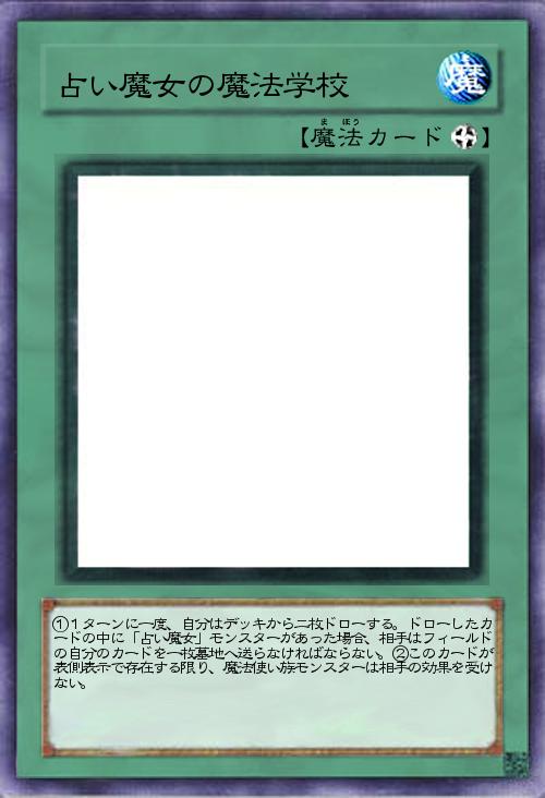 | ①1ターンに一度、自分はデッキから二枚ドローする。ドローしたカードの中に「占い魔女」モンスターがあった場合、相手はフィールドの自分のカードを一枚墓地へ送らなければならない。②このカードが表側表示で存在する限り、魔法使い族モンスターは相手の効果を受けない。 | |||