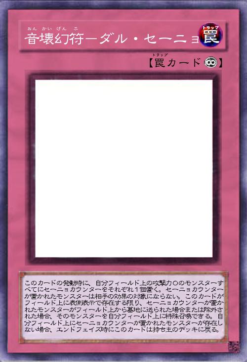 | このカードの発動時に、自分フィールド上の攻撃力0のモンスターすべてにセーニョカウンターをそれぞれ1個置く。セーニョカウンターが置かれたモンスターは相手の効果の対象にならない。このカードがフィールド上に表側表示で存在する限り、セーニョカウンターが置かれたモンスターがフィールド上から墓地に送られた場合または除外された場合、そのモンスターを自分フィールド上に特殊召喚できる。自分フィールド上にセーニョカウンターが置かれたモンスターが存在しない場合、エンドフェイズ時にこのカードは持ち主のデッキに戻る。 | |||