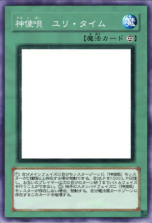 | ①:自分メインフェイズに自分モンスターゾーンに「神使姫」モンスターが2種類以上存在する場合発動できる。自分LPを1000LP回復し、お互いのプレイヤーは次の自分のターン終了までバトルフェイズを行うことができない。②:相手のスタンバイフェイズに「神使姫」モンスターが存在しない場合、発動する。自分魔法罠カードゾーンに存在するこのカードを破壊する。 | |||