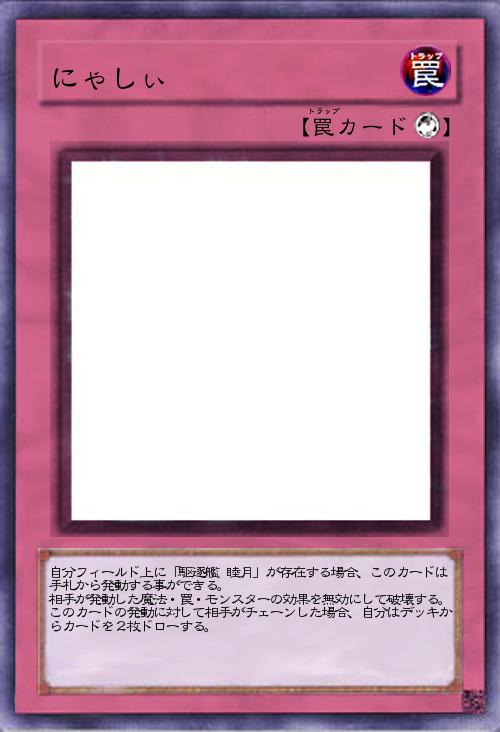 | 自分フィールド上に「駆逐艦 睦月」が存在する場合、このカードは手札から発動する事ができる。 相手が発動した魔法・罠・モンスターの効果を無効にして破壊する。 このカードの発動に対して相手がチェーンした場合、自分はデッキからカードを2枚ドローする。 | |||