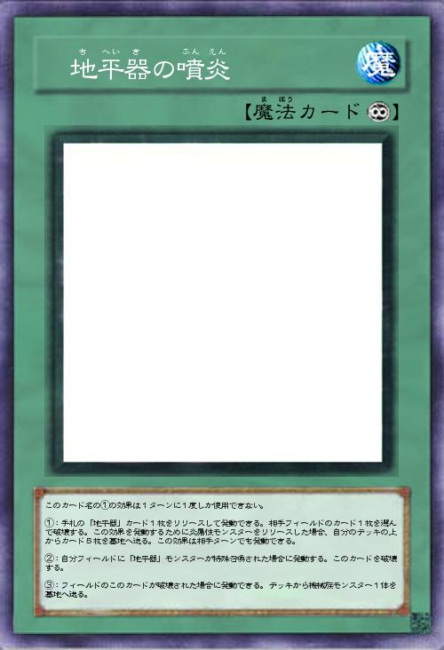 | このカード名の①の効果は1ターンに1度しか使用できない。 ①:手札の「地平器」カード1枚をリリースして発動できる。相手フィールドのカード1枚を選んで破壊する。この効果を発動するために炎属性モンスターをリリースした場合、自分のデッキの上からカード5枚を墓地へ送る。この効果は相手ターンでも発動できる。 ②:自分フィールドに「地平器」モンスターが特殊召喚された場合に発動する。このカードを破壊する。 ③:フィールドのこのカードが破壊された場合に発動できる。デッキから機械族モンスター1体を墓地へ送る。 | |||