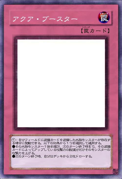 | ①:自分フィールドに装備カードを装備した水族モンスターが存在する場合に発動できる。以下の効果から1つを選択して適用する。 ●その水族モンスター1体を選び、次のターン終了時まで、その装備カードによってアップしている攻撃力の数値分だけそのモンスターの攻撃力を上げる。 ●次のターン終了時、自分はデッキから2枚ドローする。 | |||