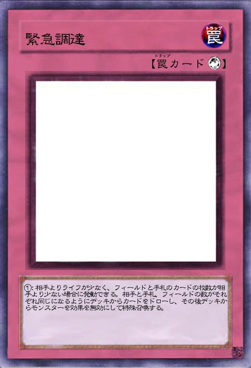 | ①:相手よりライフが少なく、フィールドと手札のカードの枚数が相手より少ない場合に発動できる。相手と手札、フィールドの数がそれぞれ同じになるようにデッキからカードをドローし、その後デッキからモンスターを効果を無効にして特殊召喚する。 | |||