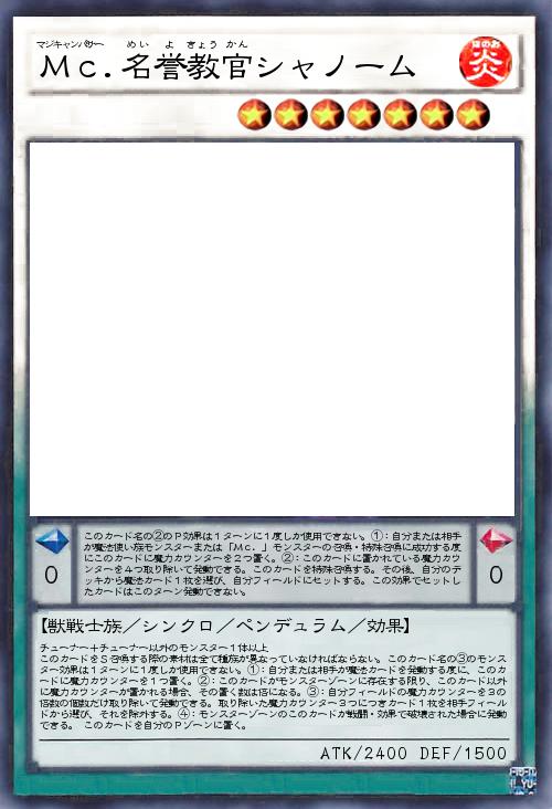 | このカード名の②のP効果は1ターンに1度しか使用できない。①:自分または相手が魔法使い族モンスターまたは「Mc.」モンスターの召喚・特殊召喚に成功する度にこのカードに魔力カウンターを2つ置く。②:このカードに置かれている魔力カウンターを4つ取り除いて発動できる。このカードを特殊召喚する。その後、自分のデッキから魔法カード1枚を選び、自分フィールドにセットする。この効果でセットしたカードはこのターン発動できない。 | |||