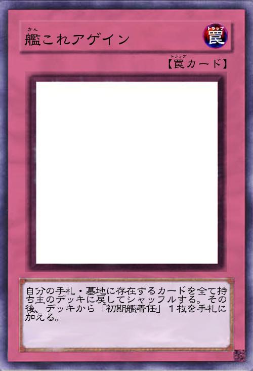 | 自分の手札・墓地に存在するカードを全て持ち主のデッキに戻してシャッフルする。その後、デッキから「初期艦着任」1枚を手札に加える。 | |||