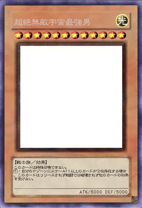 | このカードは特殊召喚できない。 ①:自分のPゾーンにスケール11以上のカードが2枚存在する場合、このカードはリリースされず戦闘では破壊されず他のカードの効果を受けない。 | |||