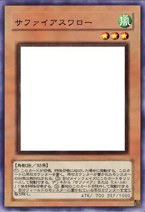 「サファイアの名を冠するモンスターで統一されたテーマ。原石をカットして強力な効果を発揮するぞ。実は前々から作っていたテーマでオリキャラが使うテーマでもあります。スワローの効果にかいてあるCA-AMIのルビはクリスタルアバターエーエムアイ」(2019-06-07 13:14)