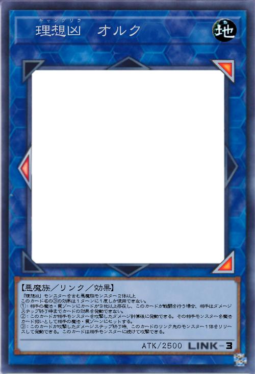 | 「理想凶」モンスターを含む悪魔族モンスター2体以上 このカード名の③の効果は1ターンに1度しか使用できない。 ①:相手の魔法・罠ゾーンにカードが3枚以上存在し、このカードが戦闘を行う場合、相手はダメージステップ終了時までカードの効果を発動できない。 ②:このカードが相手モンスターを攻撃したダメージ計算後に発動できる。その相手モンスターを魔法カード扱いとして相手の魔法・罠ゾーンにセットする。 ③:このカードが攻撃したダメージステップ終了時、このカードのリンク先のモンスター1体をリリースして発動できる。このカードは相手モンスターに続けて攻撃できる。 | |||