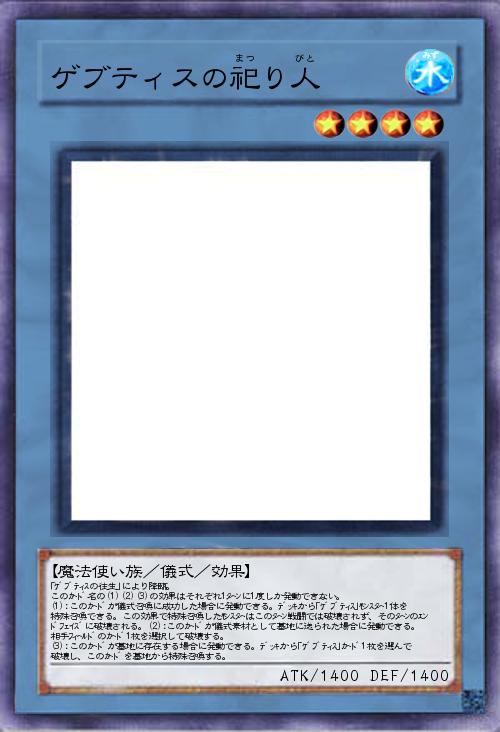 | 「ゲブティスの往生」により降臨。 このカード名の(1)(2)(3)の効果はそれぞれ1ターンに1度しか発動できない。 (1):このカードが儀式召喚に成功した場合に発動できる。デッキから「ゲブティス」モンスター1体を特殊召喚できる。この効果で特殊召喚したモンスターはこのターン戦闘では破壊されず、そのターンのエンドフェイズに破壊される。(2):このカードが儀式素材として墓地に送られた場合に発動できる。相手フィールドのカード1枚を選択して破壊する。 (3):このカードが墓地に存在する場合に発動できる。デッキから「ゲブティス」カード1枚を選んで破壊し、このカードを墓地から特殊召喚する。 | |||