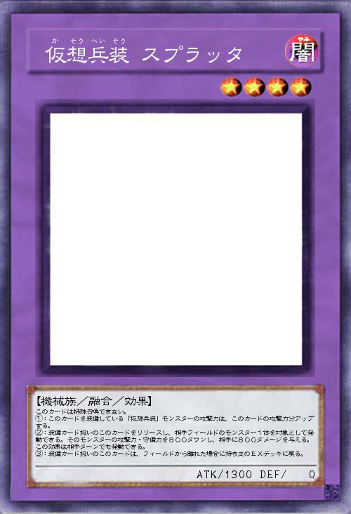 | このカードは特殊召喚できない。 ①:このカードを装備している「仮想兵装」モンスターの攻撃力は、このカードの攻撃力分アップする。 ②:装備カード扱いのこのカードをリリースし、相手フィールドのモンスター1体を対象として発動できる。そのモンスターの攻撃力・守備力を800ダウンし、相手に800ダメージを与える。この効果は相手ターンでも発動できる。 ③:装備カード扱いのこのカードは、フィールドから離れた場合に持ち主のEXデッキに戻る。 | |||